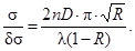 Естественная ширина резонансной кривой резонатора интерферометра Фабри-Перо δσ = (σFSR)/F, а разрешающая способность интерферометра