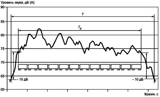 1 Временной интервал Т должен быть достаточной продолжительности для того, чтобы включить всю акустическую энергию, относящуюся к событию, включая значения на 10 дБ (А) ниже минимального значения LpА за время Т.