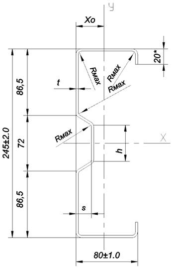 Профиль гнутый С-образный высотой 245 мм, толщиной стенки 1,5 мм по ТУ 5285-004-42481025-2004 из проката марки 280 по ГОСТ Р 52246