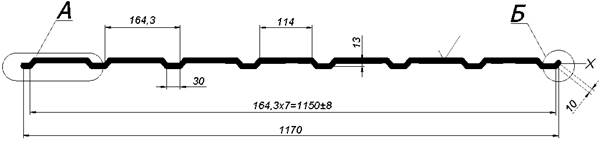 Рисунок 3.1 - Профилированный лист С13-Б-1150 тип Б. Вид 1