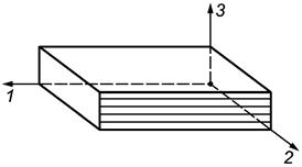 Примечания 1 Знаком «++» обозначены основные показатели КПМ. К ним относят показатели, необходимые для проектирования деталей, работающих при статических силовых нагрузках. Знаком «(+)» обозначены показатели, определяемые на этапах разработки материалов. Знаком «+» обозначены дополнительные показатели КПМ. К ним также относят показатели, определяемые по требованию потребителя. По согласованию с потребителем допускается дополнение состава основных и дополнительных показателей и их количества в соответствии с нормативной и технической документацией на конкретную продукцию. 2 Знаки «+» и «-», используемые в качестве верхних индексов в механических характеристиках, относятся к нагружению соответственно при растяжении и при сжатии. 3 Направления осей координат 1, 2, 3 приведены на рисунке 1. |