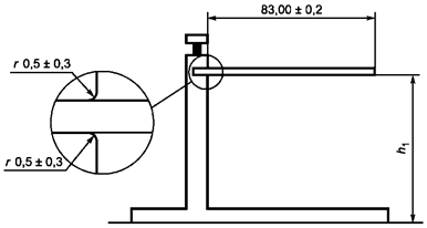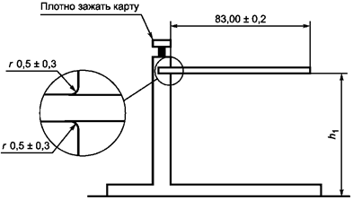 Карту закрепляют в зажимном устройстве так, чтобы был зажат весь короткий край карты, а ее лицевая сторона была обращена наверх. Если карта оснащена интегральными схемами с контактами, то ее располагают так, чтобы контакты находились напротив зажимного устройства. Измеряют h1 согласно рисунку 16.