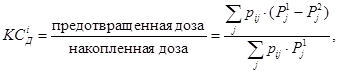 Используя результаты измерений мощностей доз до и после дезактивации, величину индивидуальной предотвращенной дозы (DEik) для представителей i-ой группы населения, пребывающих на k-ом дезактивированном участке НП (подворье, школа, детский сад) рассчитывают по формуле: