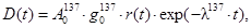 Kg = 2,4 × 105 коэффициент, учитывающий уменьшение мощности дозы со временем благодаря заглублению 137Cs в почву и его радиоактивному распаду, ч;