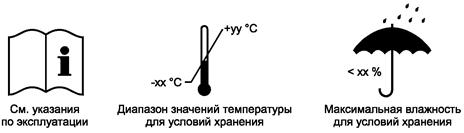 в) рекомендуемые изготовителем условия хранения (температура и влажность) или эквивалентная пиктограмма согласно рисунку 2.