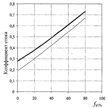 f1, f2, ... fn - площади различных видов поверхностей (стокоформирующих комплексов) рассматриваемой территории, км2 (га);