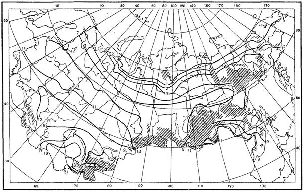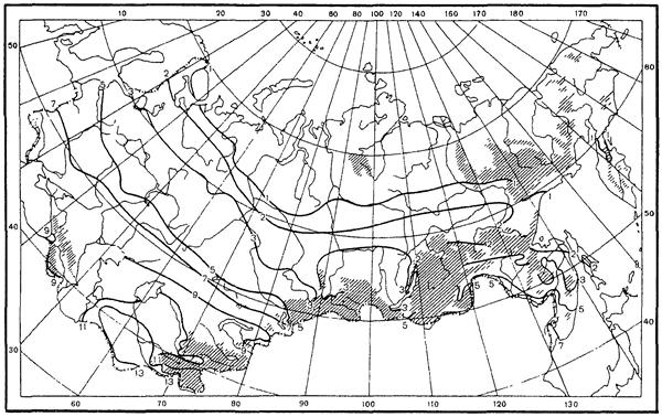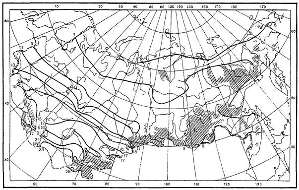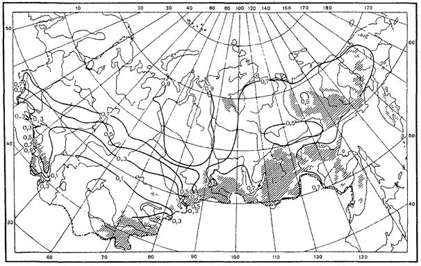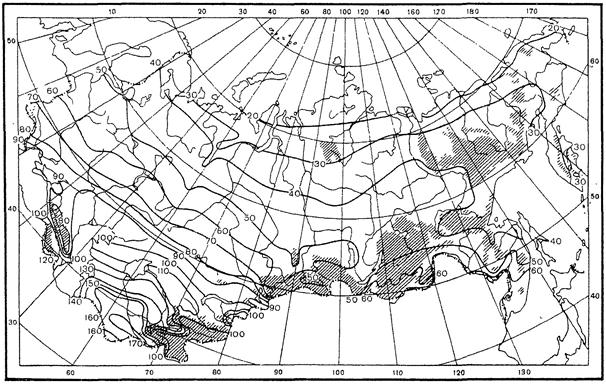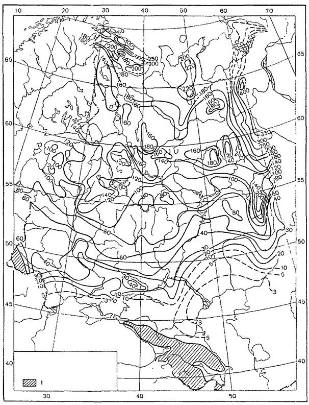 Суммы осадков за холодный период года (Рх) соответственно равны 254 мм и 320 мм. Коэффициент весеннего поверхностного стока (αср.в) равен 0,6 (табл. 10).