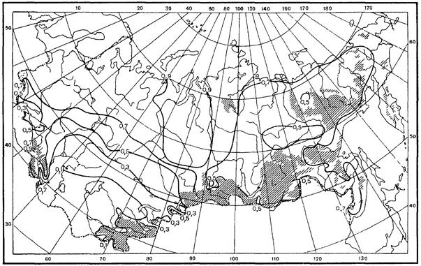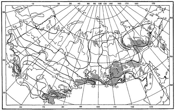 P - сумма осадков за год, месяц или за выделенный период (средняя многолетняя или заданной обеспеченности), мм;
