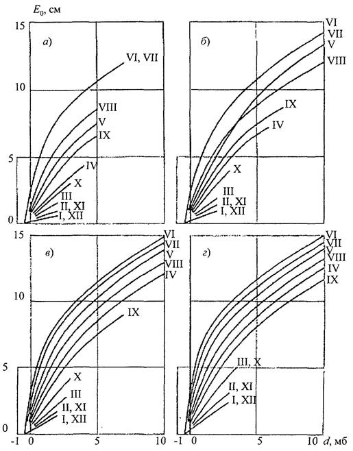 Испарение с рассматриваемой территории рассчитано по формулам (9), (10), (12) - (14).