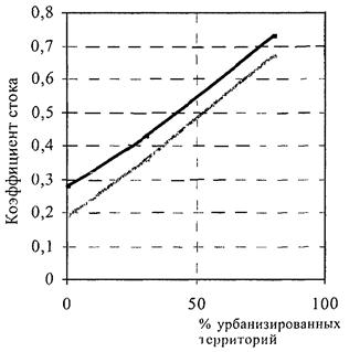 Для урбанизированных территорий учитываются: вид, тип и характер застройки; вид и тип поверхностей, характерных для техногенно освоенных территорий (кровли и асфальтобетонные покрытия дорог; откосы дна и бортов каналов; щебеночные или гравийные дороги; дороги с грунтовым покрытием; спланированные уплотненные поверхности; газоны; неспланированные неуплотненные отвалы; откосы насыпей, отвалов, дамб; залуженные, закустаренные, залесенные площади с нарушенной естественной поверхностью; обвалованные бессточные территории; акватории отстойников; водотоки (кюветы, канавы, каналы и др.) и другие виды поверхностей). Кроме дренированности и канализованности территории учитываются также положительные элементы техногенного водного баланса территории - поливы газонов и зеленых зон, мойка территории, утечки из водотранспортирующих коммуникаций (водопровод, водопровод системы пожаротушения, теплотрассы, паропроводы, ливневая, общесплавная, фекальная, хозяйственно-бытовая и специальные канализации; дренажи и дренажные коллекторы; подземные емкости) и т.д. Кроме того, помимо ветрового переноса снега учитывается его уборка и вывоз с территории, а также завоз снега и организация снежных свалок и др.