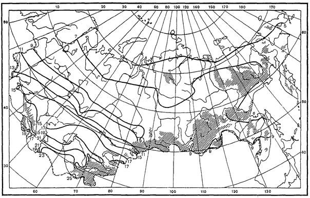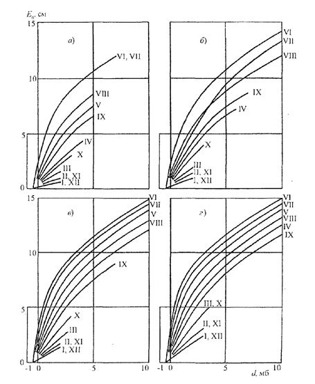Суммы осадков за холодный период года (Рх) соответственно равны 254 мм и 320 мм. Коэффициент весеннего поверхностного стока (αср в) равен 0,6 (табл. 10).