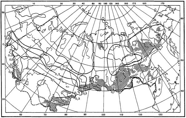 Р - сумма осадков за год, месяц или за выделенный период (средняя многолетняя или заданной обеспеченности), мм;
