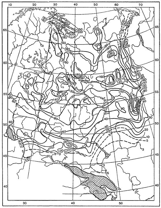 Величины осадков взяты по данным наблюдений Санкт-Петербургского ИЦП за период 1920 - 2003 гг. - с введением необходимых поправок.