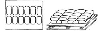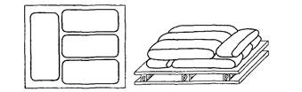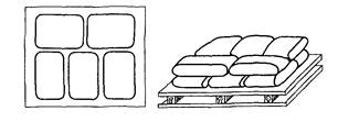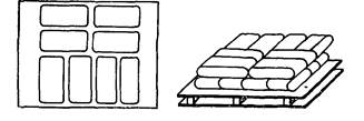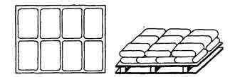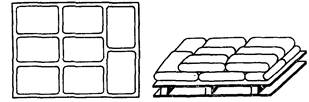 2.1.2. Грузы в мешках, кипах и тюках для лучшей устойчивости следует формировать в пакеты таким образом, чтобы места каждого последующего (вышележащего) яруса по возможности перекрывали стыки мест каждого предыдущего (нижележащего) яруса, т. е. вперевязку.