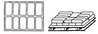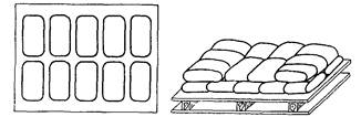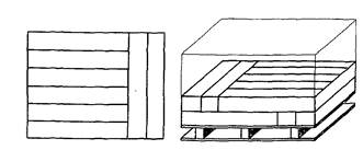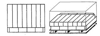 2.2.2. При формировании пакетов из грузов в кипах или в таре цилиндрической формы груз опускается краном на один поддон или большее количество поддонов, установленных вплотную друг к другу длинной или короткой стороной.