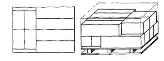 2.1.3. Грузы в ящиках устанавливаются друг на друга ровными вертикальными рядами или вперевязку.