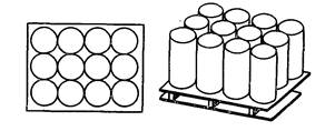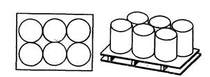 2.1.4. Грузы в таре цилиндрической формы устанавливаются на поддон таким образом, чтобы образующие каждого грузового места соприкасались с образующими соседних грузовых мест. Высота установки - один ярус. Грузы в барабанах правильной цилиндрической формы массой до 50 кг, высотой до 450 мм н диаметром не менее 350 мм допускается устанавливать на поддон в два яруса с применением жесткой межъярусной сепарации.