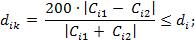 di, d - норматив оперативного контроля сходимости для i-ro компонента и метилового спирта, %, соответственно (приведены в таблице 2).