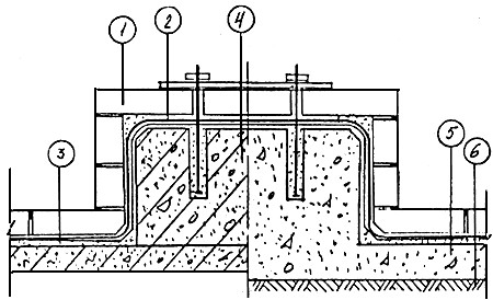 5.3. Приготовление водного раствора смол и подача его к соплу производится из специального пневмобака (рис. 2) объемом 1,6 м3 с рабочим давлением до 0,6 МПa (бак типа ресивера для компрессора). Объем бака принят из расчета полной выработки раствора до начала полимеризации приготовленной добавки, т.е. в течение 3 - 4 ч. Подвод воды к баку осуществляется от водопроводной сети и контролируется установленным на входе водомером. В баке желательно предусмотреть перемешивающее устройство с ручным или механическим приводом. Перемешивание можно производить также с помощью сжатого воздуха, подаваемого через отводной патрубок аварийного сброса раствора с добавками. Бак должен быть оснащен предохранительным клапаном и манометром. Использование бака с заданным рабочим давлением позволяет получать торкрет высокого качества, с минимальными потерями добавок.