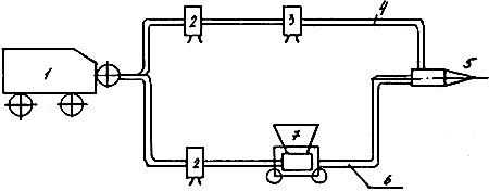 5.1. Нанесение полимерцементного покрытия производится с помощью установки для набрызг-бетонирования (рис. 1), состоящей из следующих звеньев: