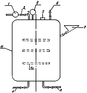 аварийного сброса; 10 - перемешивающие устройство; 11 - бак