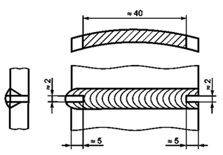 - t - толщина материала контрольного сварного соединения (толщина пластины или стенки трубы);