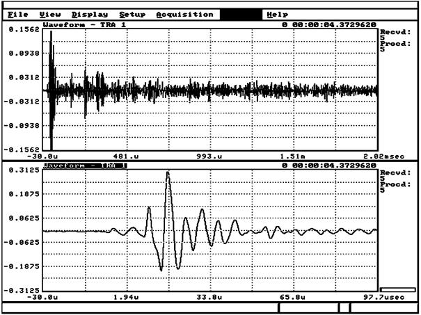 Рисунок 1 - Один и тот же пакет сигнала АЭ при различных временных развертках