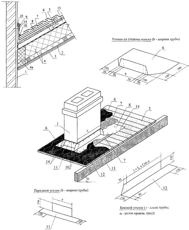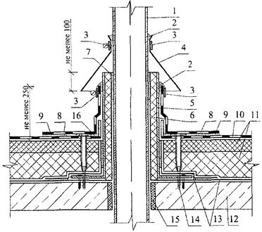 Рисунок П.4 - Примыкание кровли к кирпичной трубе