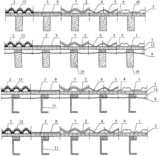 Рисунок Т.1 - Конструктивные схемы кровель из железобетонных лотковых панелей
