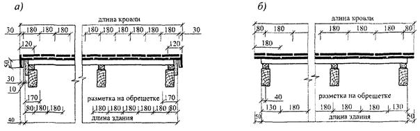 Рисунок Н.5 - Крепление волнистых листов (а) и схема разбивки обрешетки под листы СВ40/150 (б)