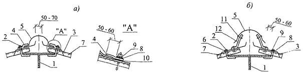 Рисунок Н.7 - Конек кровли глухой (а); вентилируемый (б)
