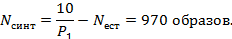 Предположим, что требуется тестировать вероятность ошибок первого рода Р1 = 0,01, заявленную некоторым производителем средства биометрической аутентификации. При этом мы имеем естественный биометрических образ «Свой», представленный Nест = 30 примерами. В соответствии с требованиями ГОСТ Р 52633.1 имеющиеся естественные биометрические примеры необходимо дополнять искусственно синтезированными примерами количеством: