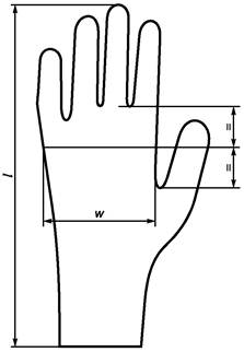 Ширина ладони перчатки и длина перчатки, измеренные в точках, показанных на рисунке 1, должны соответствовать значениям, приведенным в таблице 2, при уровне контроля и приемлемом уровне качества, указанным в таблице 1.