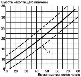 Рисунок Х1.1 - Зависимость между высотой некоптящего пламени и люминометрическим числом