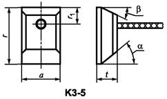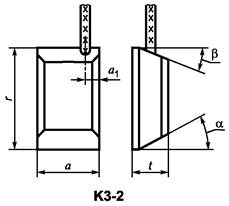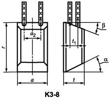К3-3 - щетка со скошенными контактной и верхней поверхностями, двумя проводами на верхней поверхности, симметричными относительно оси щетки;