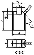 К13-2 - щетка прямоугольная с пазом и скосом на верхней поверхности и одним проводом на скосе;