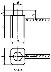 К14-5 - щетка прямоугольная с головкой на верхней поверхности и одним проводом на боковой грани;
