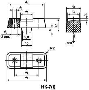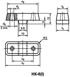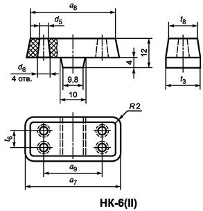 К6-3 - щетка прямоугольная с двумя скосами на верхней поверхности, симметричными относительно оси щетки, и двумя проводами на скосах;