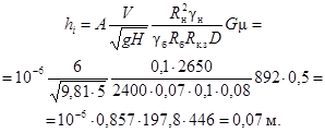 4. Принимая объемную массу бетона равной γб = 2400 кг/м3 и имея все исходные данные, вычисляем глубину износа h бетонной облицовки за 1 год по выше приведенной эмпирической формуле: