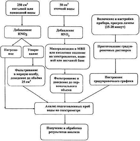 Блок-схема проведения анализа при определении общего содержания металлов приведена в приложении 1.