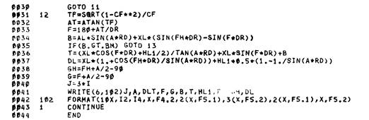 l - длина участков, образующих вместе со средним прямолинейным участком l1 центральные внутренние углы поворота φ и φн;