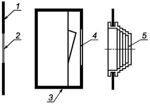 1 - коробка; 2 - покрывающая пластина; 3 - крышка; 4 - образец; 5 - аппарат;