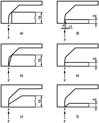 Рисунки с), d) и f) - соответствуют. (Соответствие, тем не менее, проверяют согласно 12.1.2.4 с применением измерительного прибора, показанного на рисунке 16.)