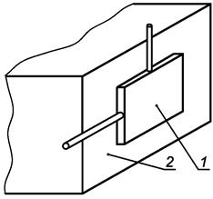 1 - испытательный стержень (металлический); 2 - острые края под прямым углом