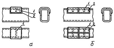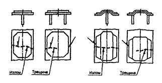 в) заварка излома стоек с постановкой усиливающей накладки;
