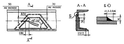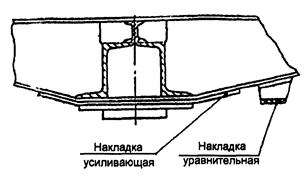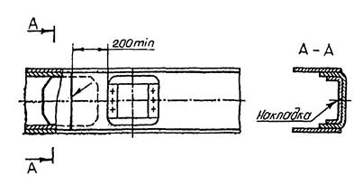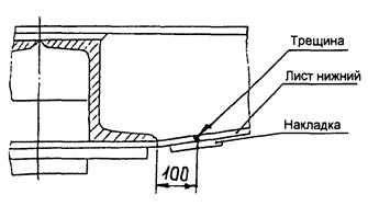 б) приварка накладок на места обшивки с пробоинами или поврежденные коррозией, деф. 3, а также заварка трещин обшивы, деф. 4, длиной до 100 мм без постановки накладок.