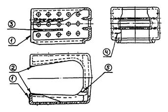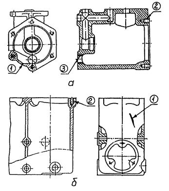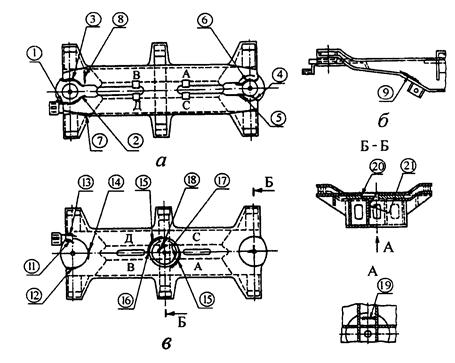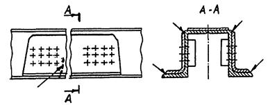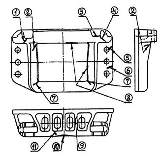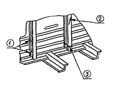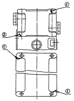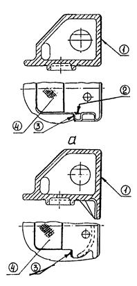 б) наплавка изношенных стенок отверстий, деф. 1, 3, или постановка втулок в эти отверстия с приваркой их по торцам.