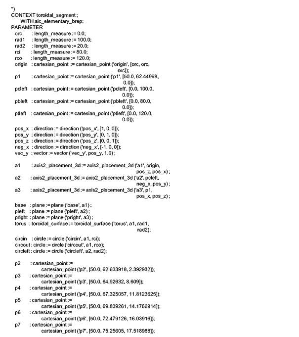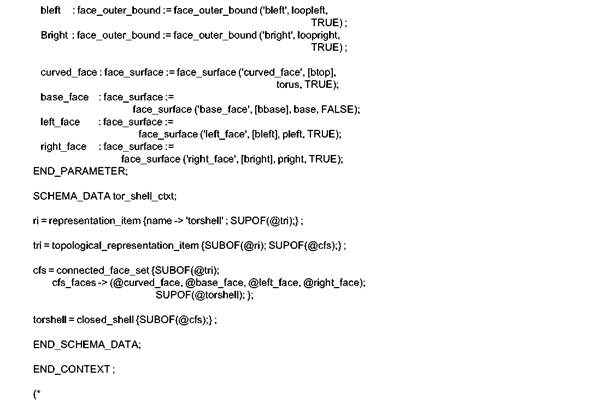 Данный контекст описывает грани, необходимые для определения сегмента тора, ограниченного плоскостями. Объектами edge_curve являются объекты line, circular arcpolyline.