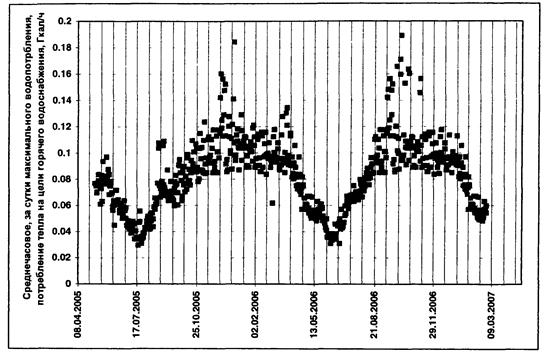 энергии на горячее водоснабжение отображают в прямоугольной системе координат: