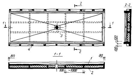 3.10. Теплозащитный слой выполняется из фенольного пенопласта или ПСБС методом вспенивания в полости, образованной отформованной плитой и приставной опалубкой. После снятия опалубки утеплитель удерживается силами адгезии к бетону и деревянными брусками, крепящимися к ребрам панели. Снизу фенольный утеплитель защищается окрасочной пароизоляцией.